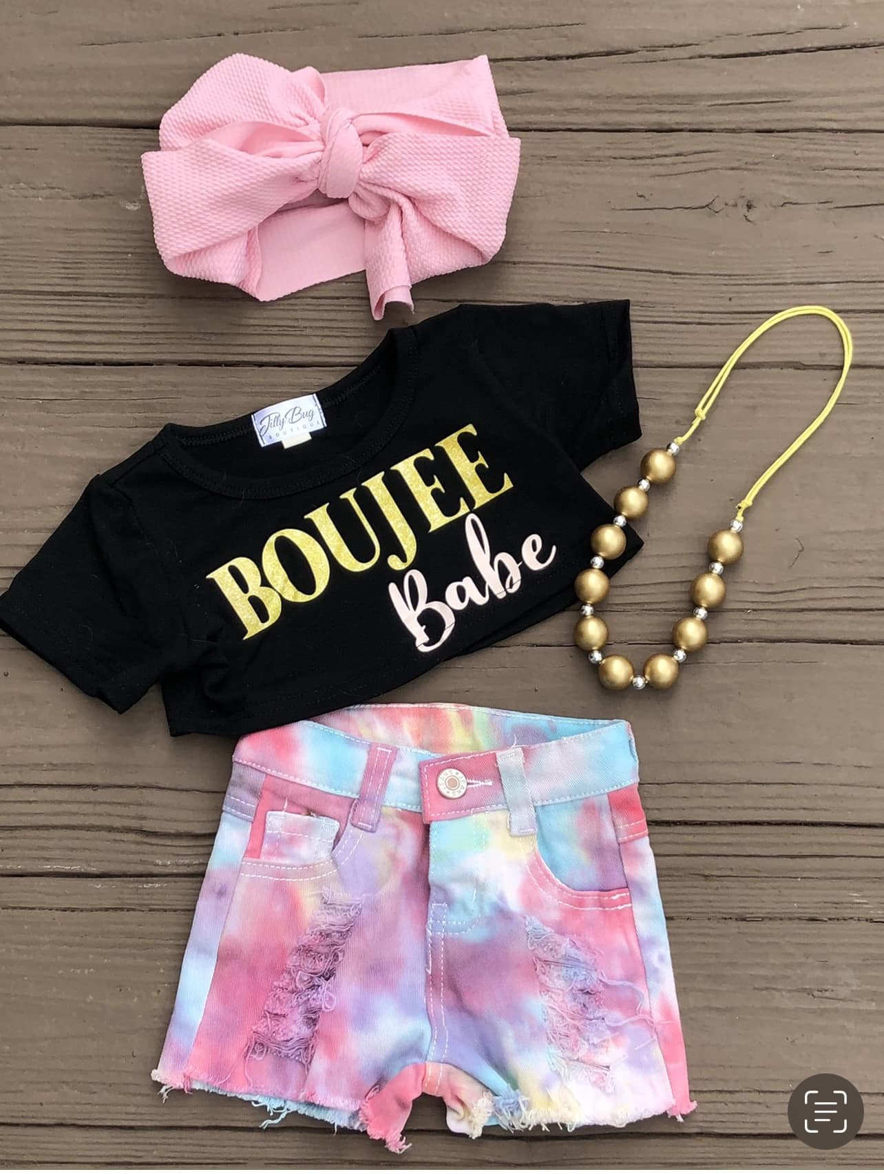Black crop top with Boujee Babe design. Perfect for the little extra girl we all have. Layer for a look through all four seasons Crop top ONLY. Other items sold separately