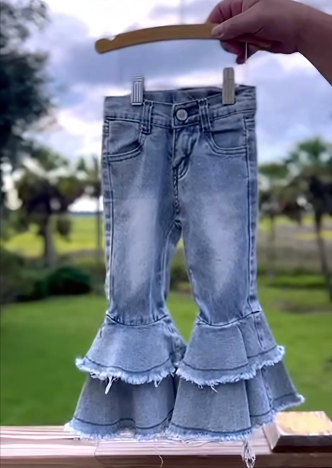 Our quality double ruffle jeans are the perfect statement and they fit amazing and feel spectacular. All our jeans have adjustable waists. She will love her look and they pair great with all our accessories