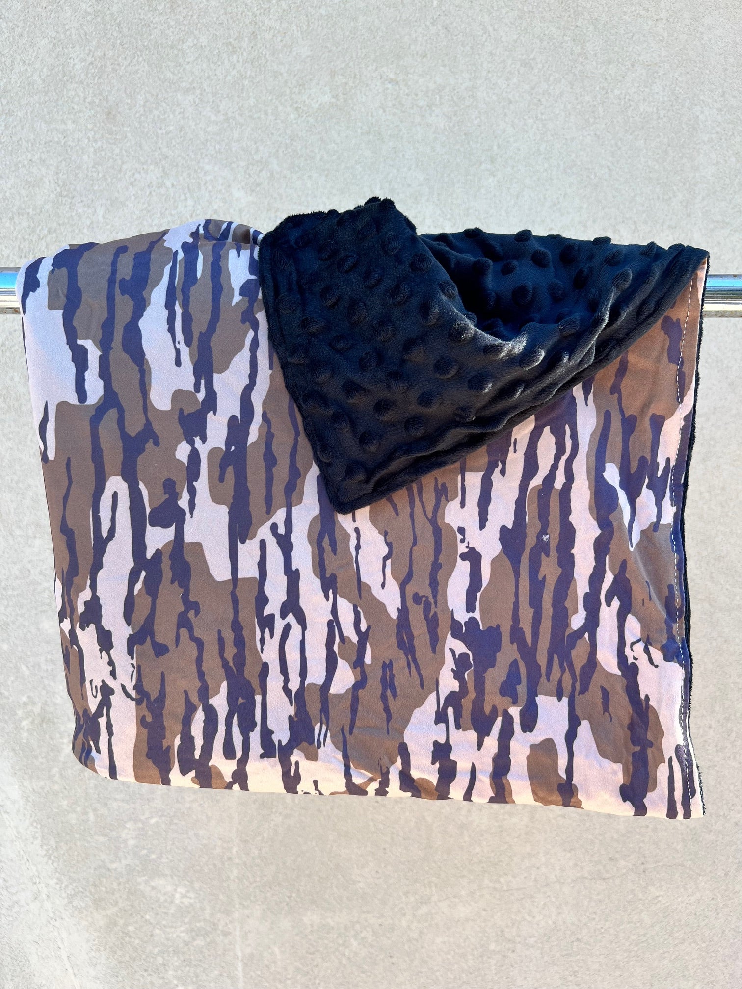 Camo Baby Blanket. soft minky material make these blanket the perfect blanket for infants to toddlers and beyond. Blankets are 30X40 Camo and black backing