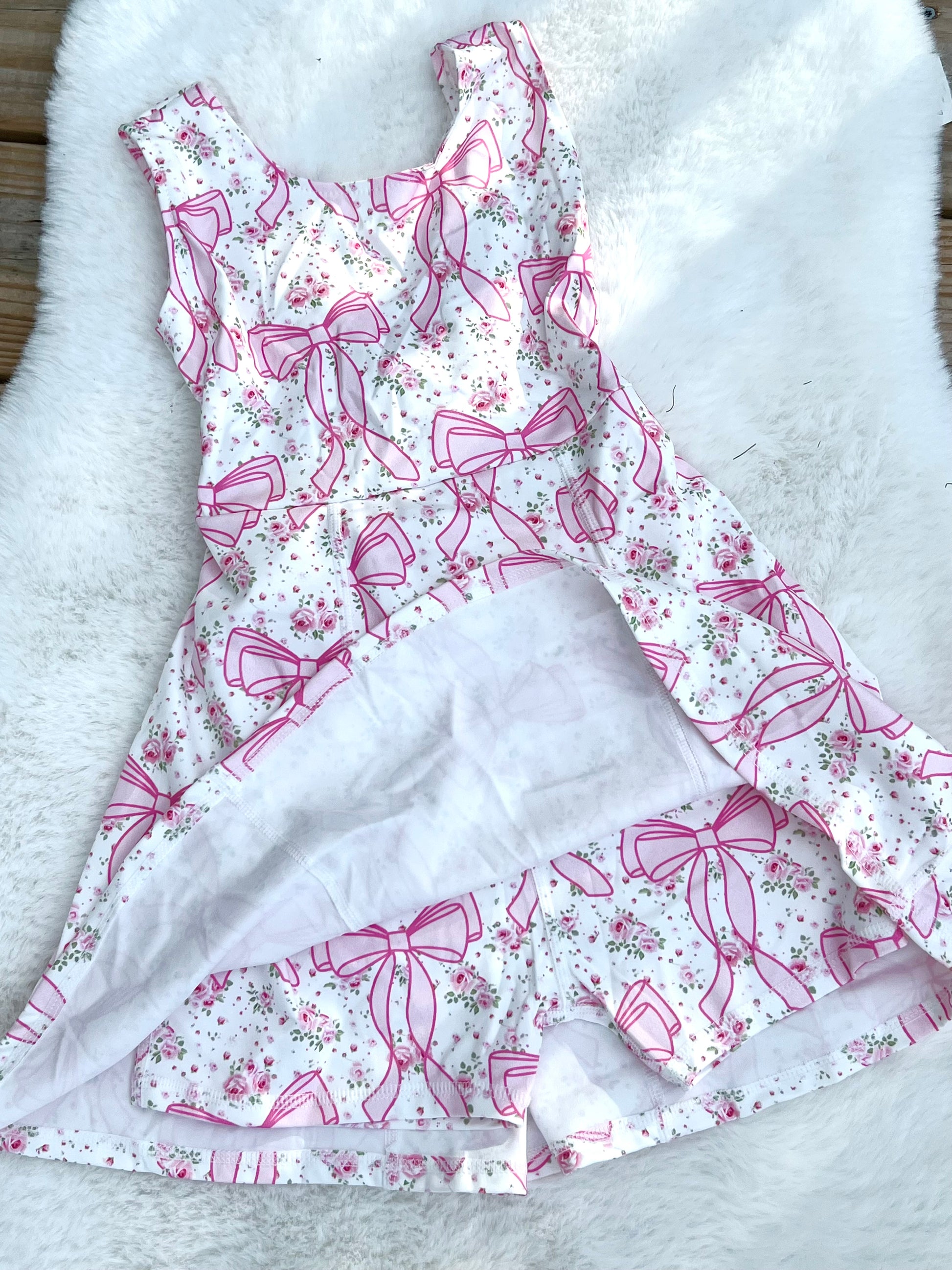Our viral Pink Bow dress is in our new collection. Has under shorts so great for school, vacations, family dinners, any where her Summer takes her.