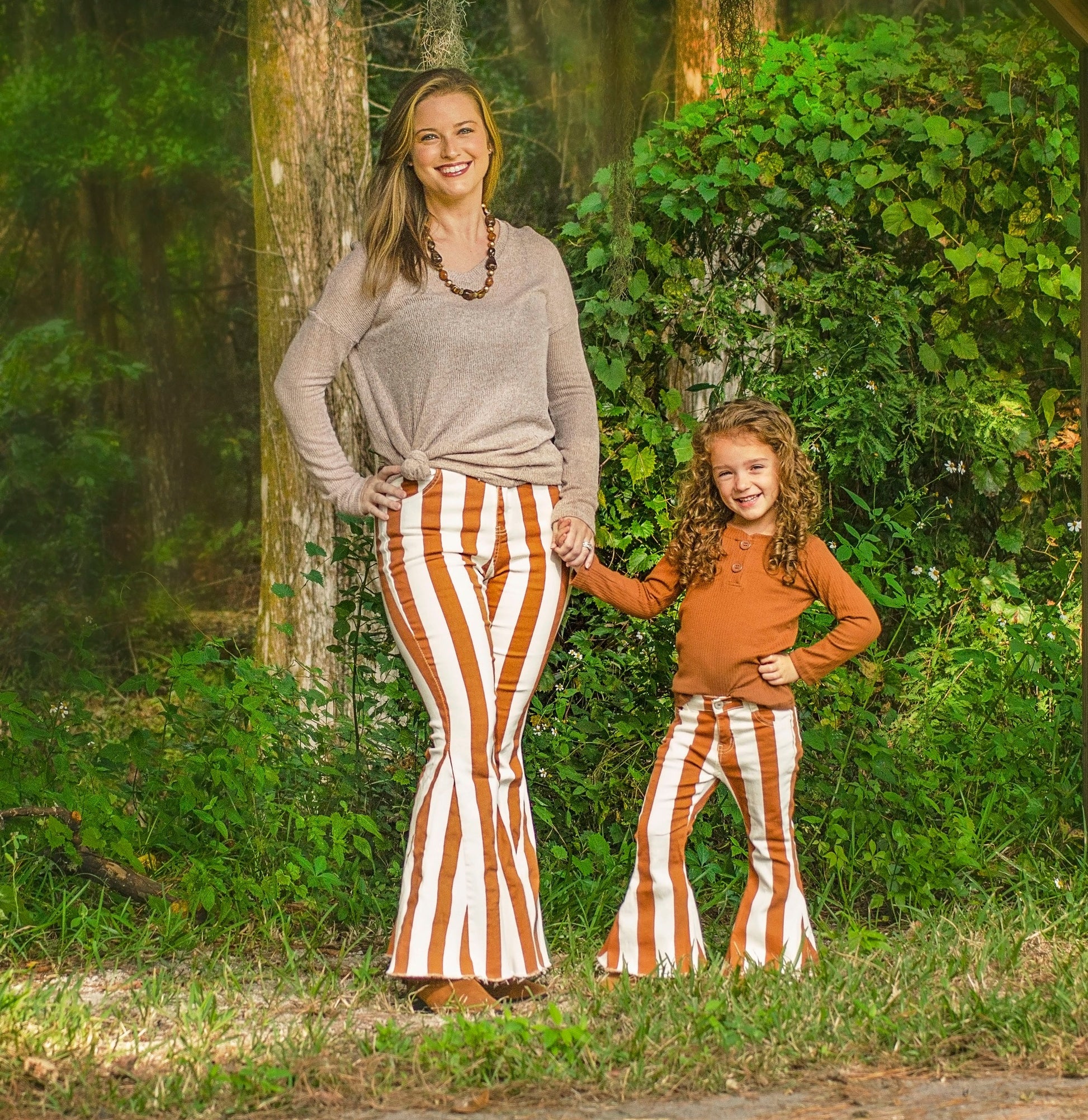 Girls stripe jeans . Flare bottoms and they all have adjustable waists