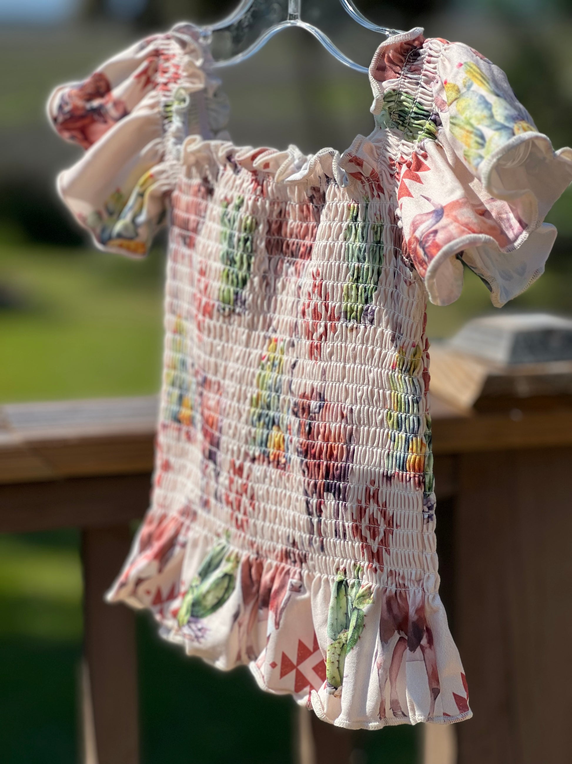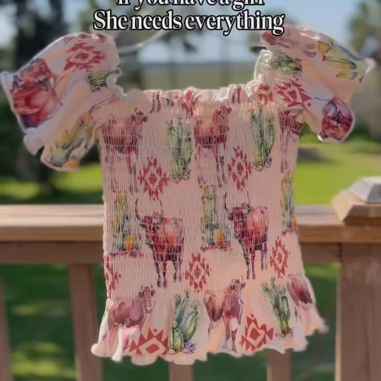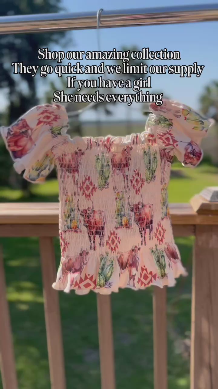 Pretty western shirt with shirring gathers. She will love this one with shorts or jeans.